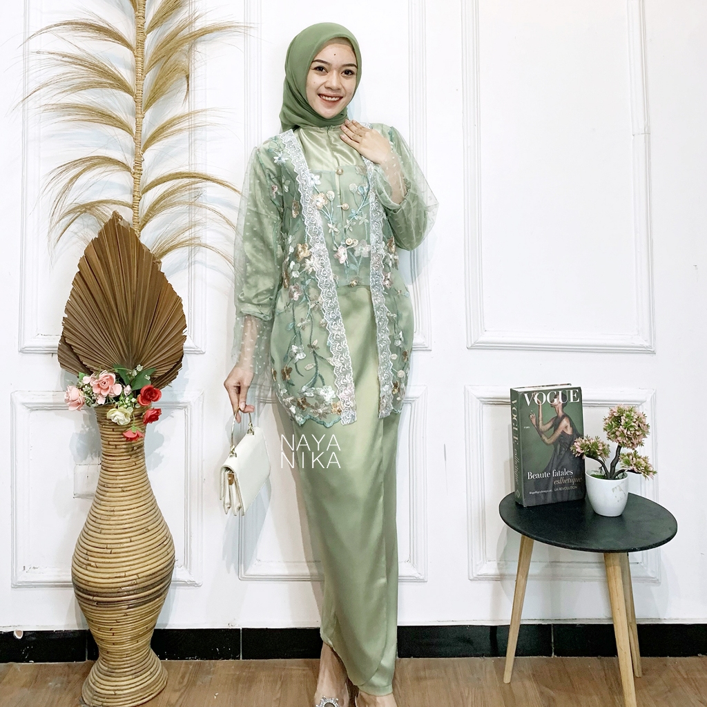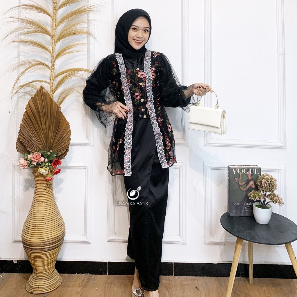 (FLASH SALE)[New Arrival] Nayaka Batik - One Set Kondangan KIANA Kebaya Kutu Baru Tulle Garden Mix Velvet Halus Set
