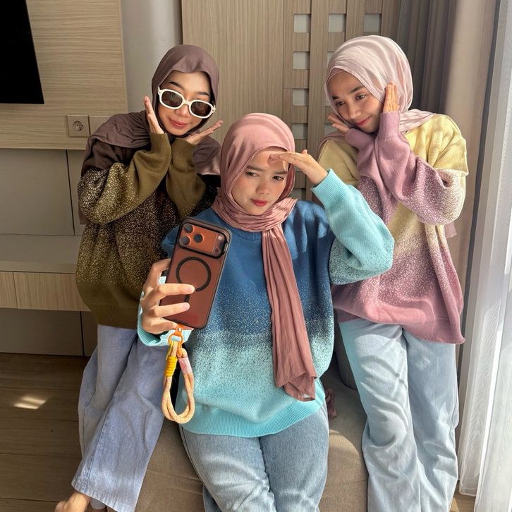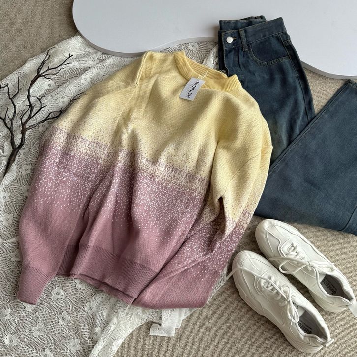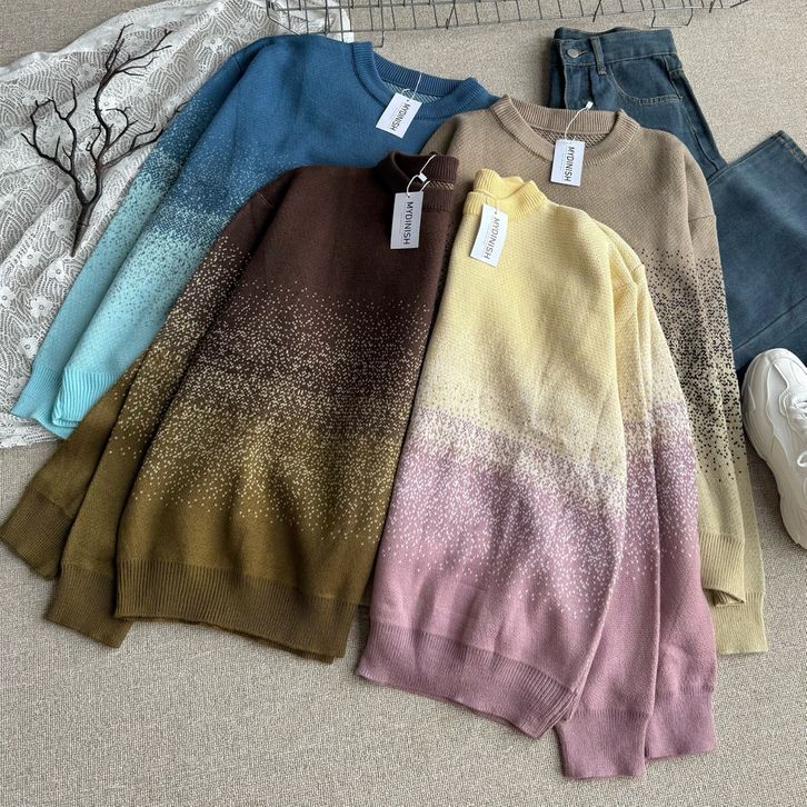 Sweater Rajut Wanita Grevita Oversize | Ombre Gradasi Knitwear Jumbo Trendy