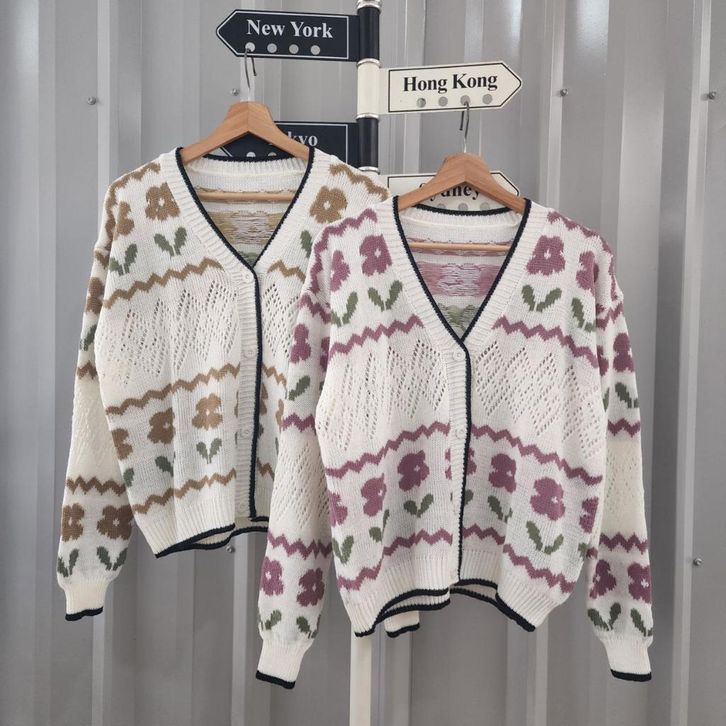 Cardigan Wanita Rajut Motif Bunga Yura Flower Cardy Knite Outher Kardigan Korean Style