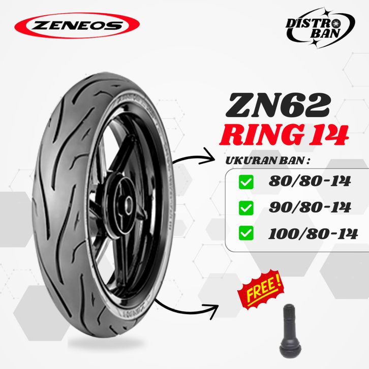 BAN SATUAN/SEPASANG ZENEOS ZN62 80/80 90/80 100/80 RING 14 VARIO BEAT TUBELESS