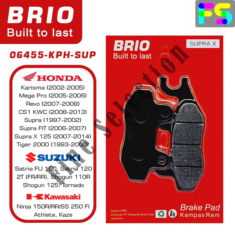 BRIO FRONT BRAKE PAD KAMPAS REM DEPAN DISC DISPED REM SUPRA X FIT 125 REVO KARISMA 06455 KPH DISPAD 1DUS 20PCS