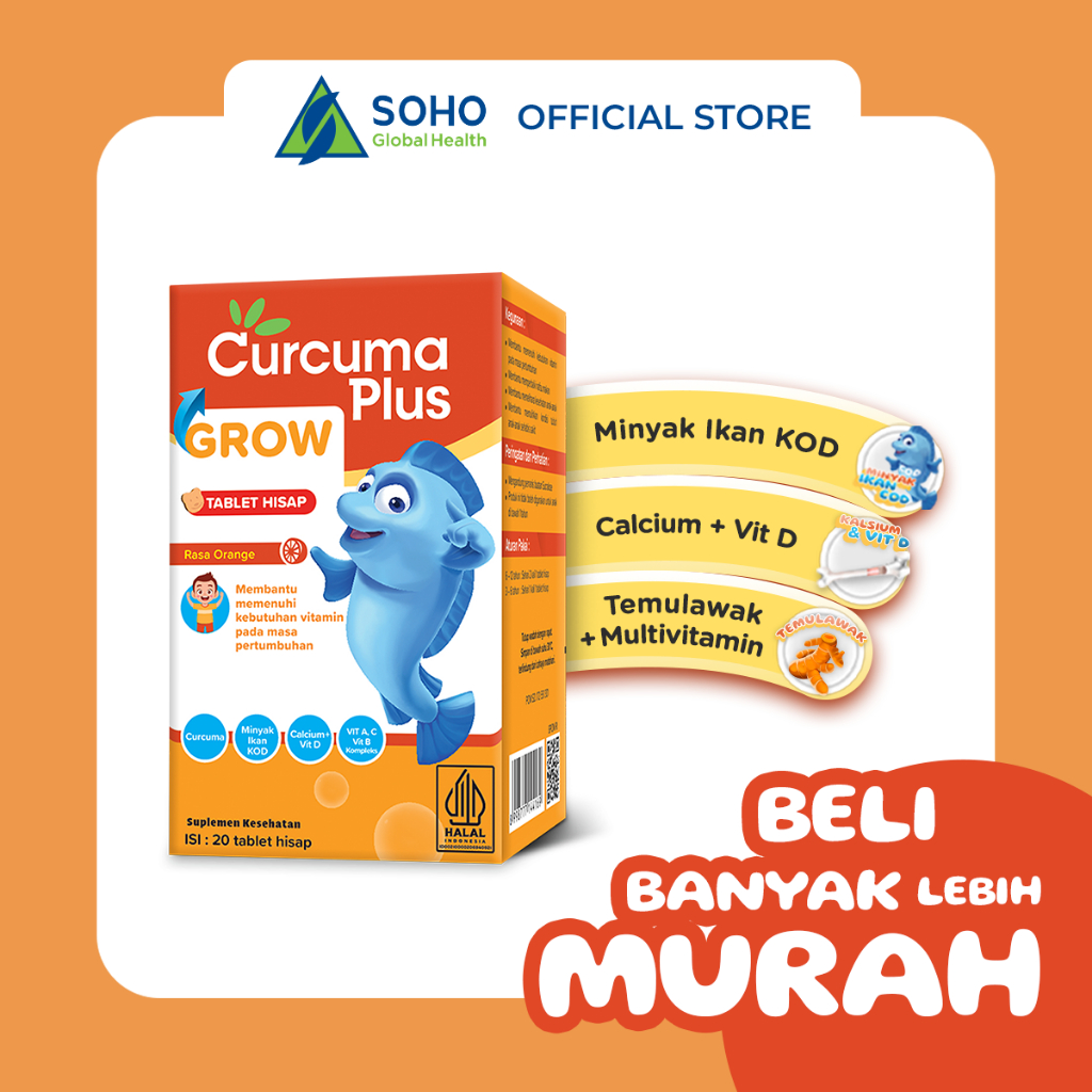 Curcuma Plus Grow Tablet Hisap Multivitamin Rasa Jeruk 20 Tablet