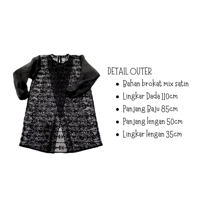 ONE SET 3IN1 OUTER OUTWEAR TUNIK HITAM BRUKAT BROKAN TILE ROK PLISKET JILBAB BELLA | OOTD OUTFIT WANITA ANAK PEREMPUAN