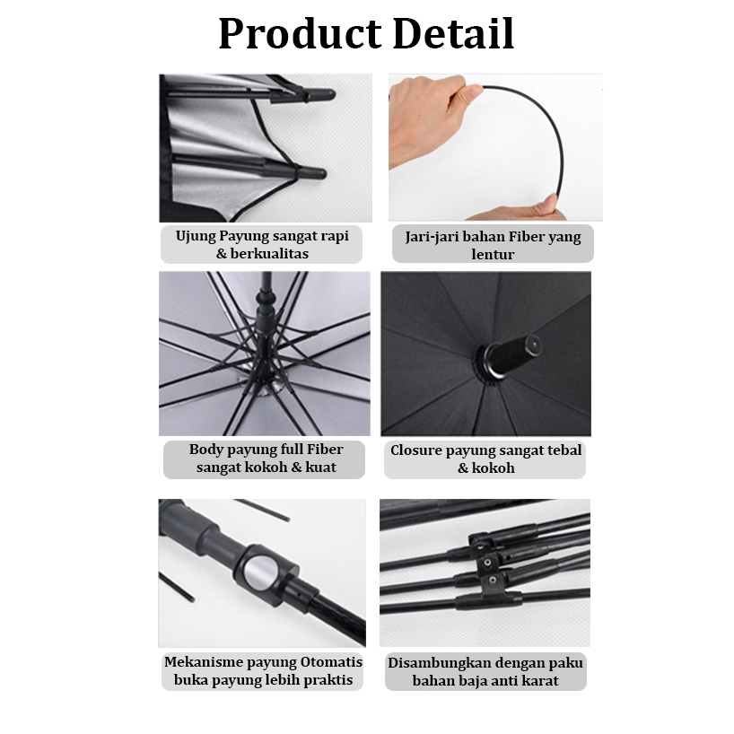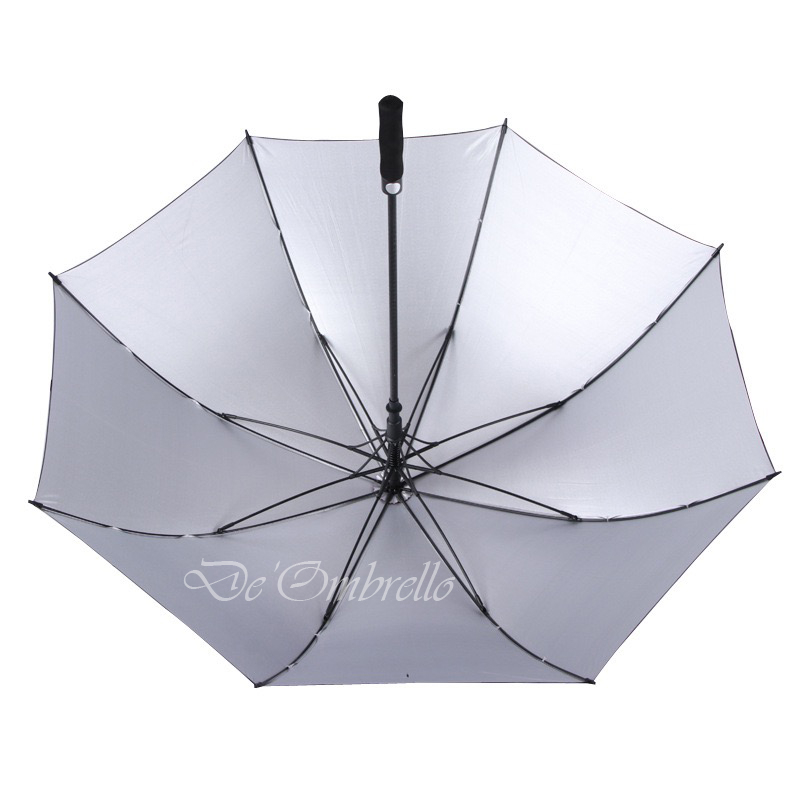 (58 )Payung Golf Otomatis Rangka Fiber Polos Silver Warna ANTI UV + Sarung Kain /Payung Jumbo