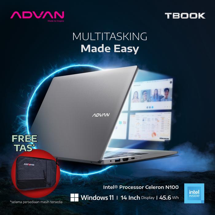 Advan Tbook Laptop Notebook Intel N100 4Gb/128Gb 14" Inch Hd Free Windows 11 - Dark Grey