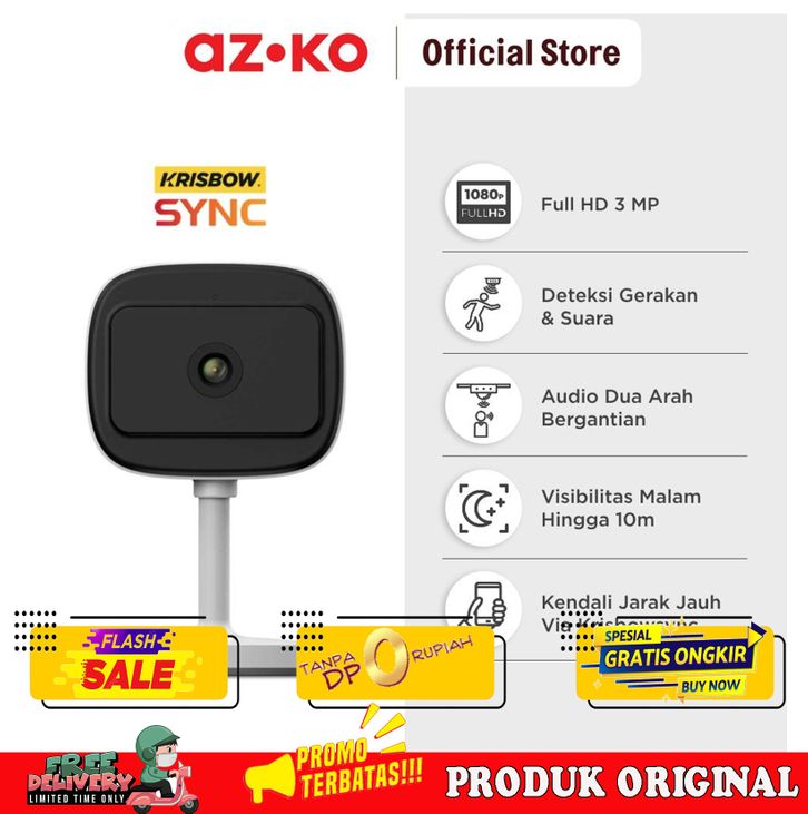 AZKO Krisbow Sync Smart Ip Camera Mini Wifi 3 Mp 21T Kamera Pengawas Camera Pengintai Alat Keamanan Spy Cam