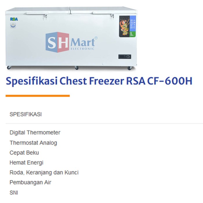 Chest Freezer Rsa Cf-600H 500 Liter Lemari Box Pendingin Cf600H Medan