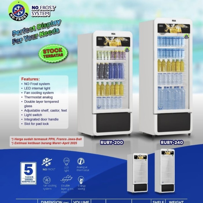 Rsa Kulkas Showcase Ruby 200 Ruby200 200 Liter Chiller No Frost / Tidak Ada Bunga Es 3 Rak Kulkas Display