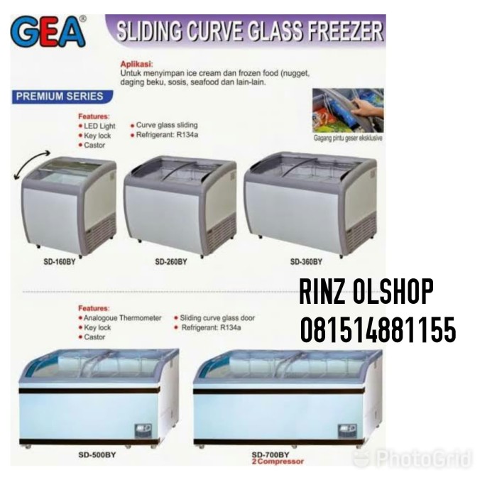 Gea Sliding Curve Glass Freezer Sd-260By Garansi Resmi