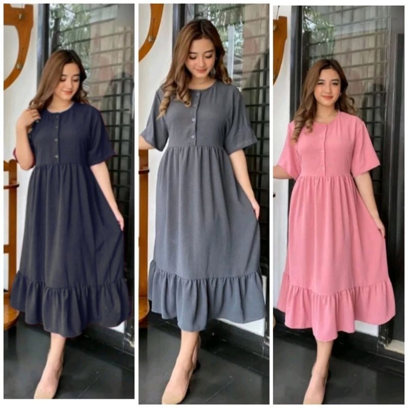 Daster Viral Paket 3 Pic Dress Wanita Bumil Busui Bahan Crinkle Airflow LD 120 Nadira Dress Crinkle