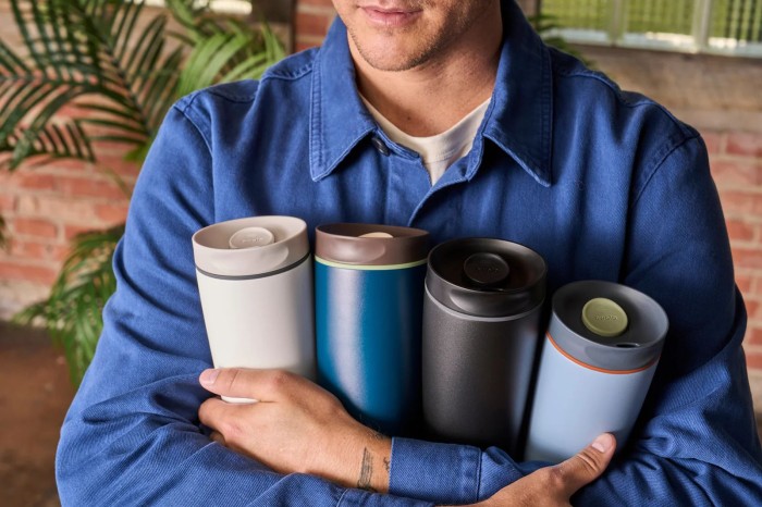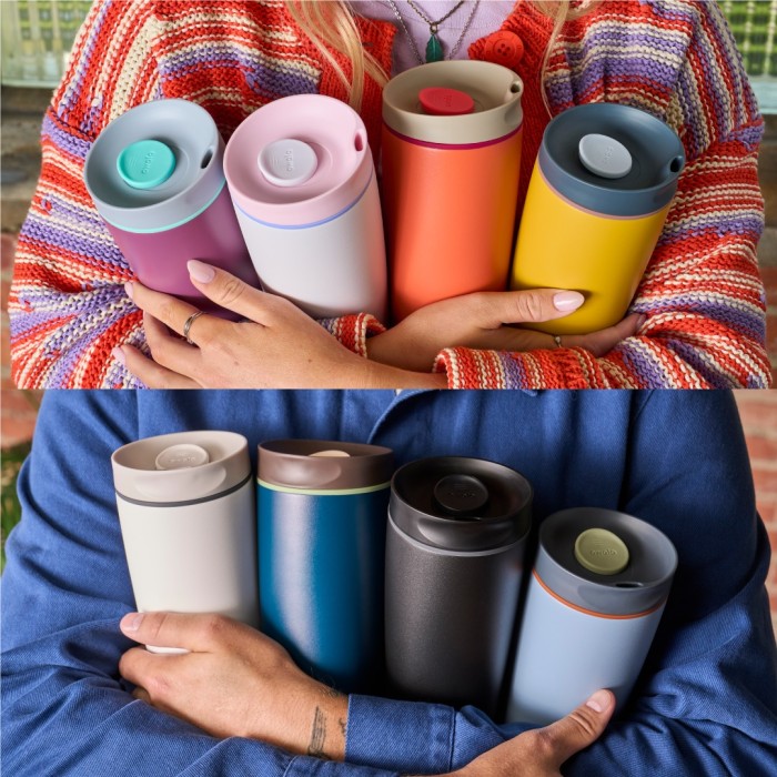 OWALA SMOOTHSIP SLIDER INSULATED STAINLESS STEEL COFFEE TUMBLER " 12OZ AND 20OZ " - BEACHY BREEZE , 12OZ