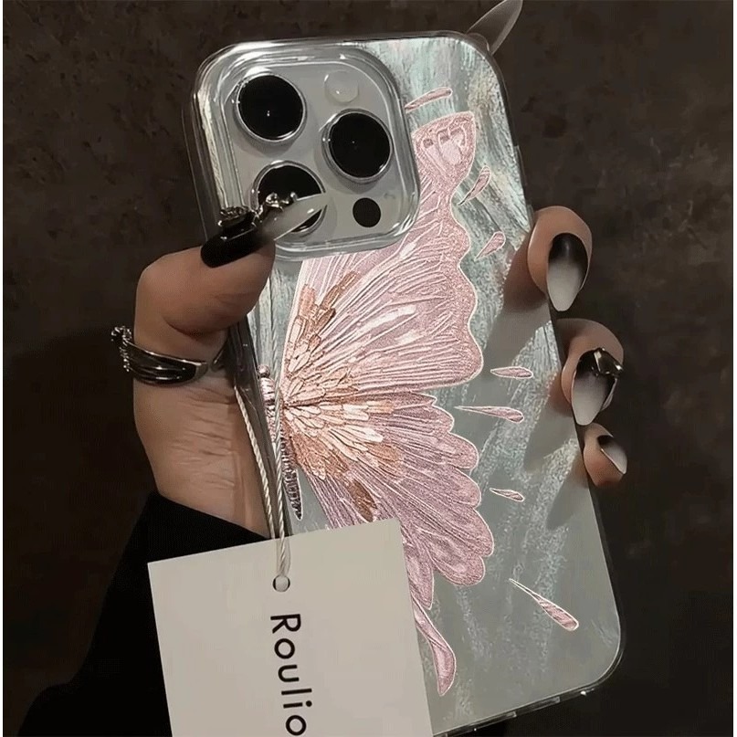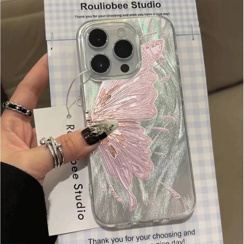 For iPhone 11 15 16 13 14 Plus 12 Pro Max X XR XS Max 11Pro 11Pro Max 7 8 Plus Pink butterfly high quality fashion mobil
