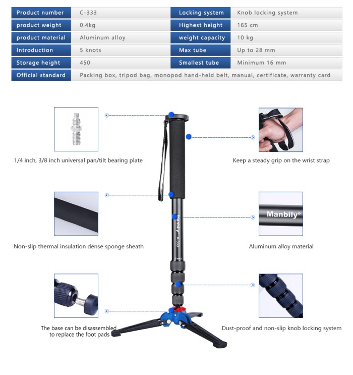 Monopod Manbily A-333 For Dslr Mirrorless Canon Nikon Sony Fujifilm