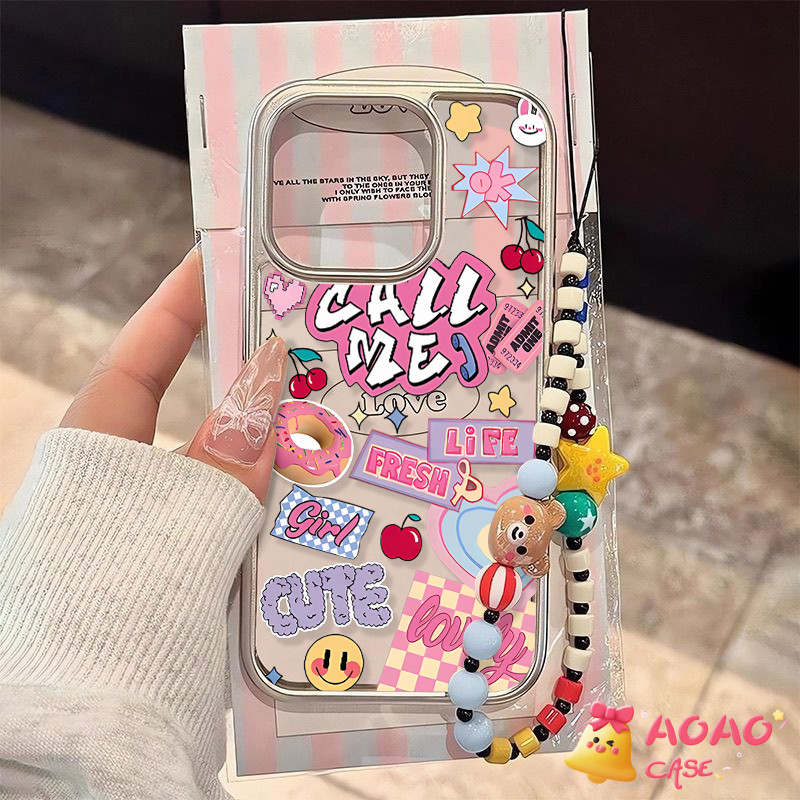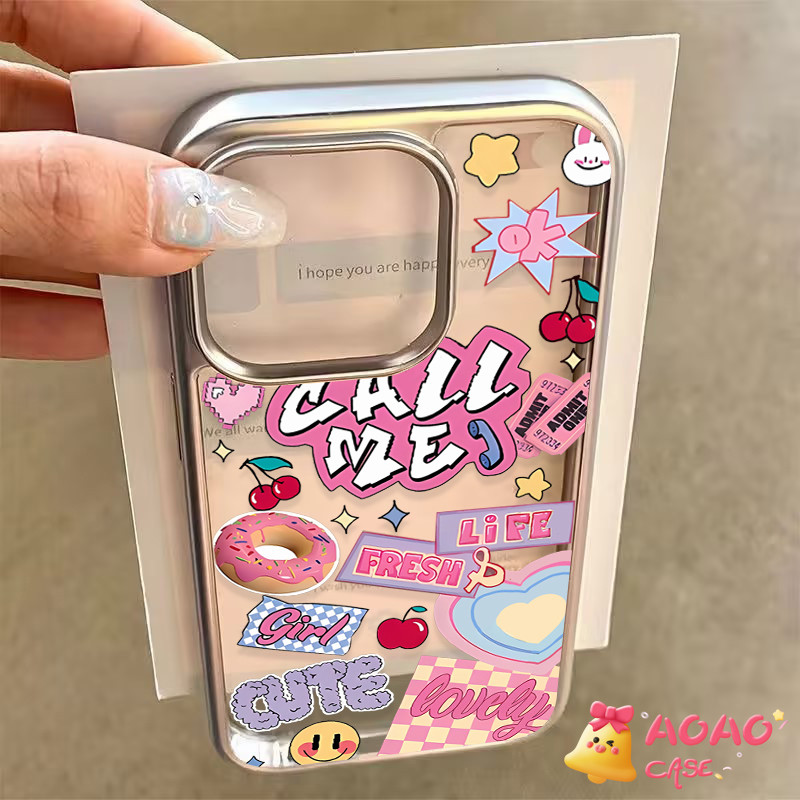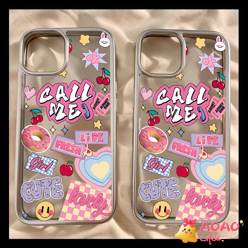 Case HP Untuk IPhone 13 11 15 12 14 Pro Max XR 7Plus 8Plus 7 8 14 15 Plus X XS MAX SE 2020 Cute Sweet Doodle Girl Donut