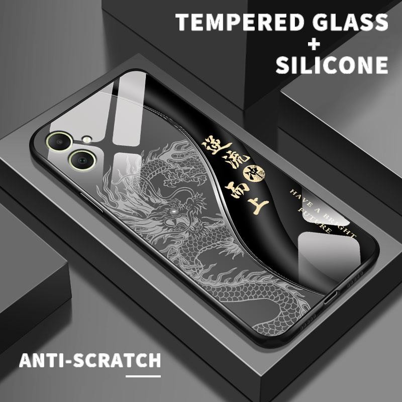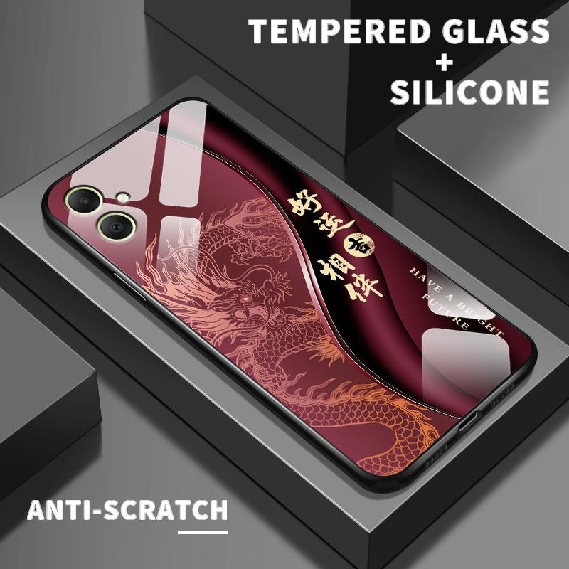 Kaca Glass Case Untuk Samsung A05 A05s A02 A02s A03 A03 Core A03s A04 A04E A04s Silikon Back Cover Hard Case Motif Naga