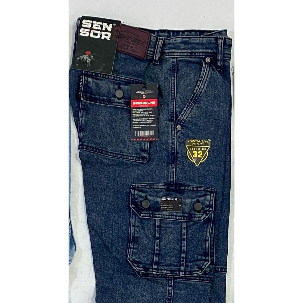 SENSORLINE - JEANS CARGO PANJANG PRIA BLUE WASH - UNISEX STYLE STRETCH Celana panjang pria- celana panjang skena- celana