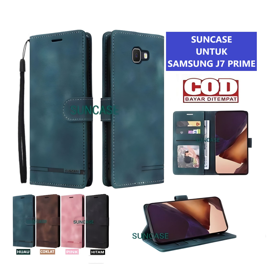 Casing SAMSUNG J7 PRIME model flip buka tutup case kulit ada tempat foto dan kartu juga tali hp flip cover