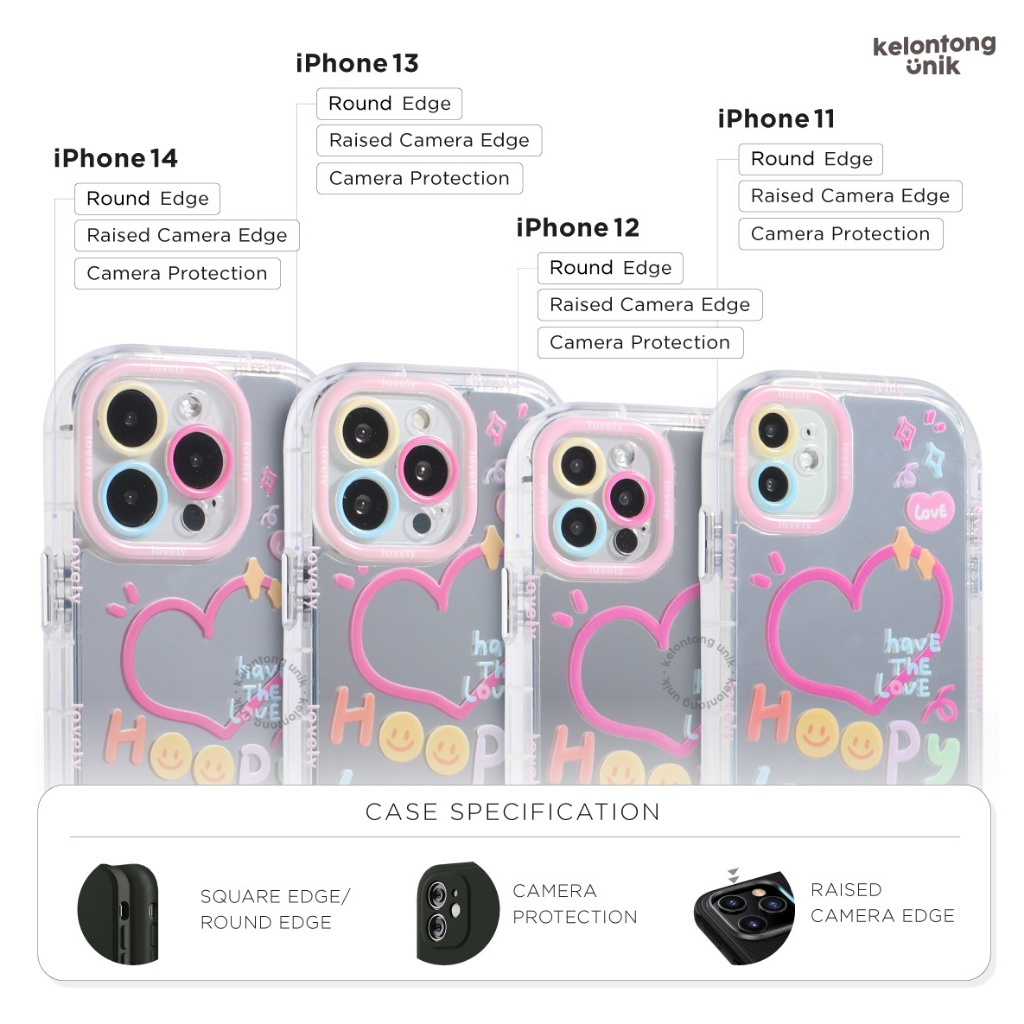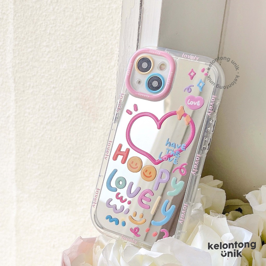 KELONTONG UNIK | Happy Lovely Mirror Case/ Case Cermin - Casing HP/ Hardcase for iPhone 11 12 13 14 15 16 PRO PROMAX PLU