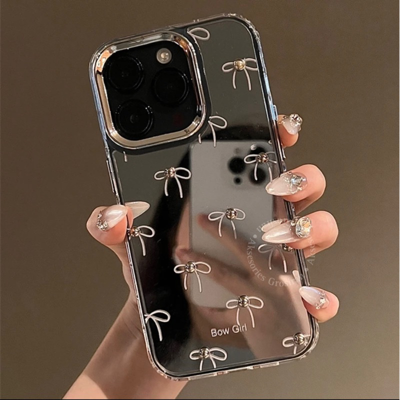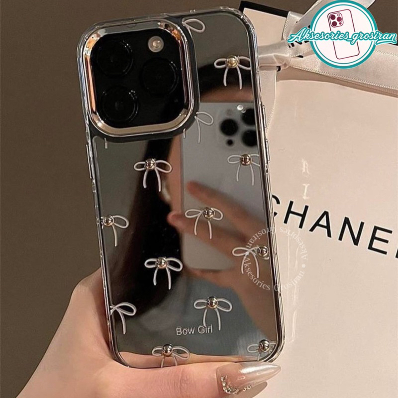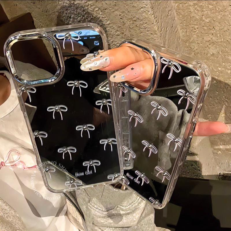 MIRROR COQUETTE BOW GIRL CASE IPHONE X XR XS MAX 11 12 13 14 15 16 PRO MAX 14+ 15+ 16+ PLUS Casing Cermin 2 in 1