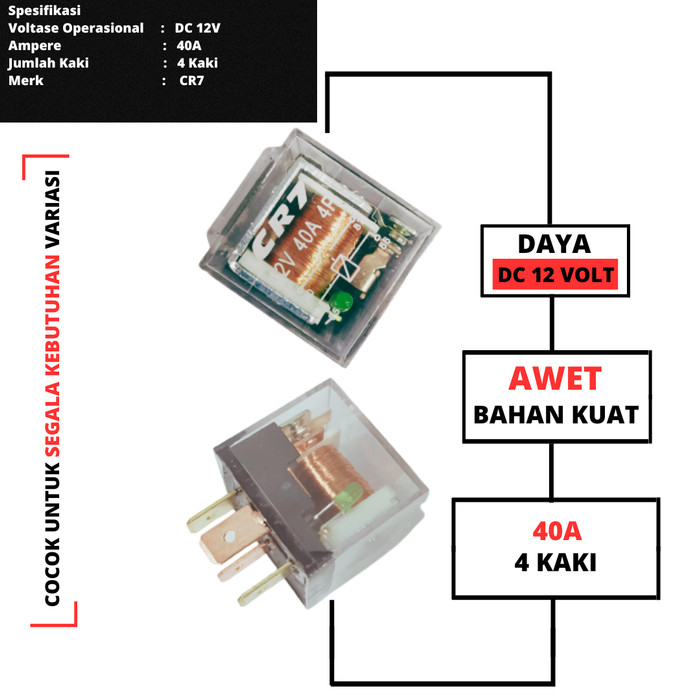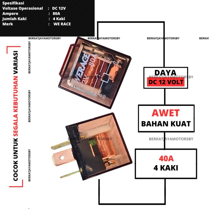 DP 0 RELAY KLAKSON TRANSPARAN 40 AMPERE KAKI 4 WE RACE 80A