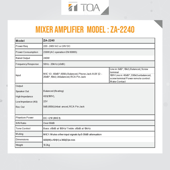 [PROMO] TANPA DP MIXER AMPLIFIER TOA POWER AMPLI AMPLIFIER MODEL ZA2240 GARANSI RESMI