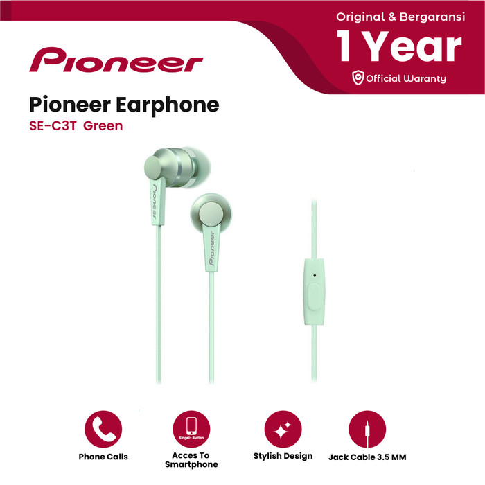 [PROMO] TANPA DP PIONEER SEC3T EARPHONE WITH MIC GARANSI RESMI GREEN