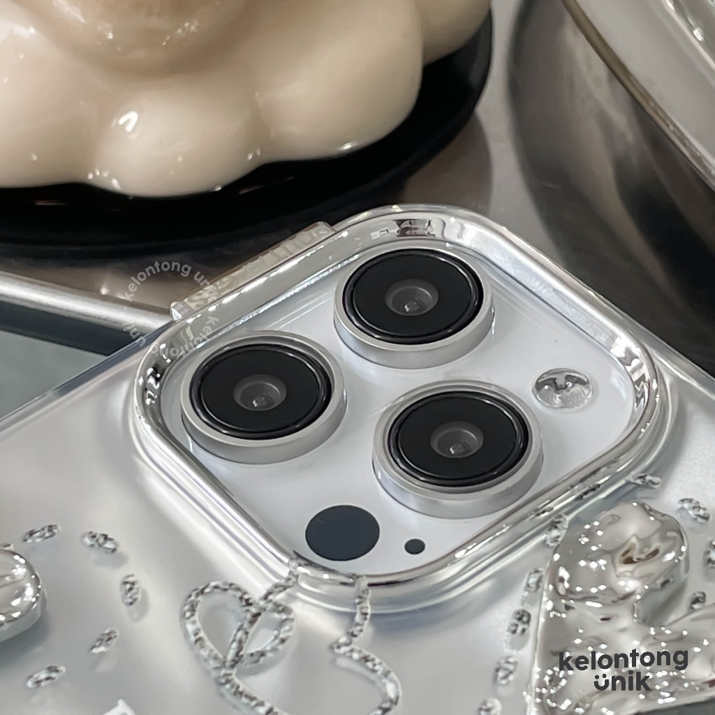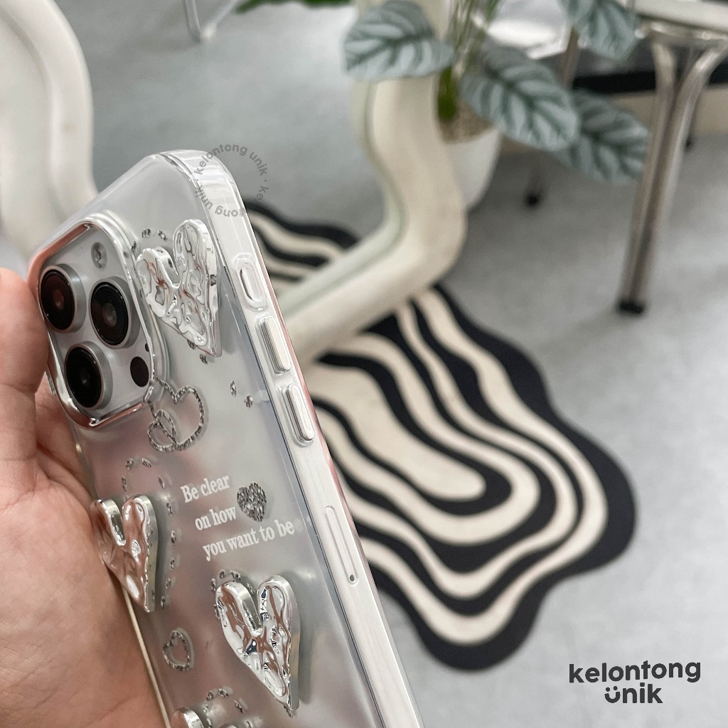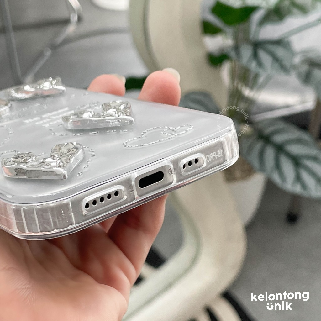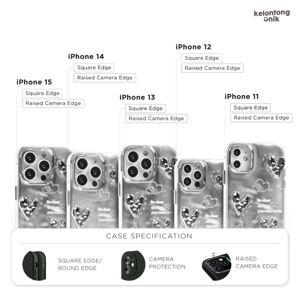 KELONTONG UNIK | Silvery Heart Metalic Wrinkle Case with Charm - Hardcase/ Casing HP for iPhone 11 12 13 14 15 16 PRO PR