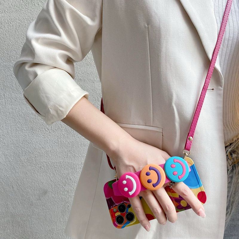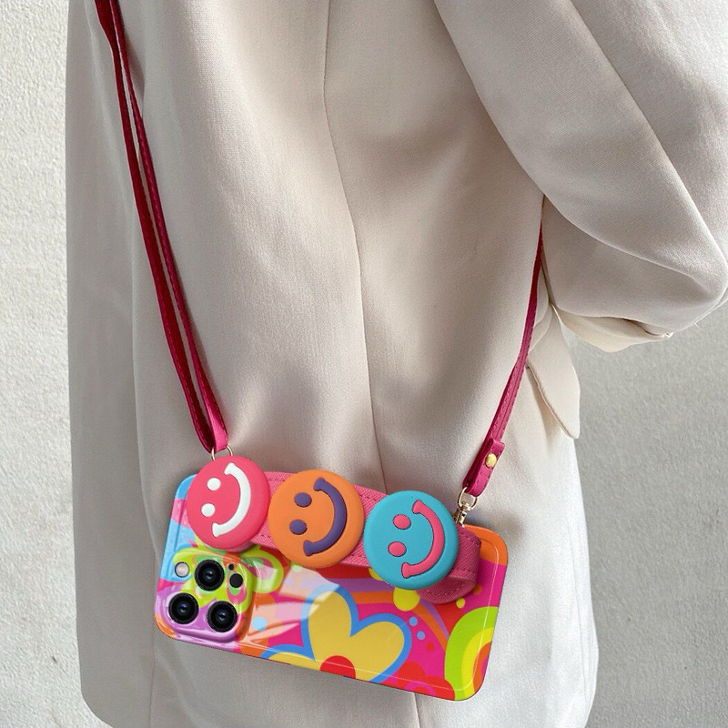 Fullcolor Smiley Strap Softcase Casing Case HP Lucu iphone 11 Pro Max 12 Pro Max 13 Pro Max 14 Pro Max 14 Plus 15 16 Pro