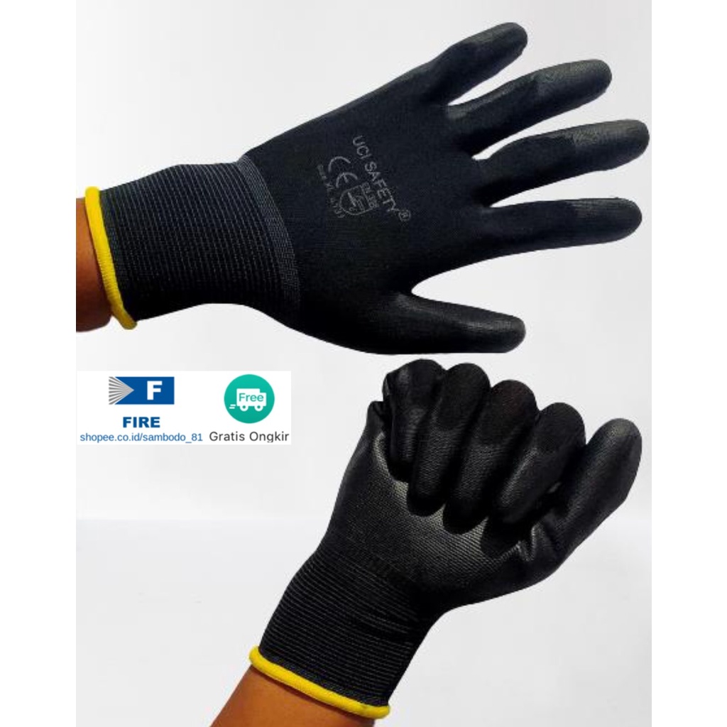 Sarung Tangan Multitask Karet Palm Fit Ukuran S,M, L, Xl Proyek Satpam Anti Slip Hitam Black Hand Gloves Mekanik Montir