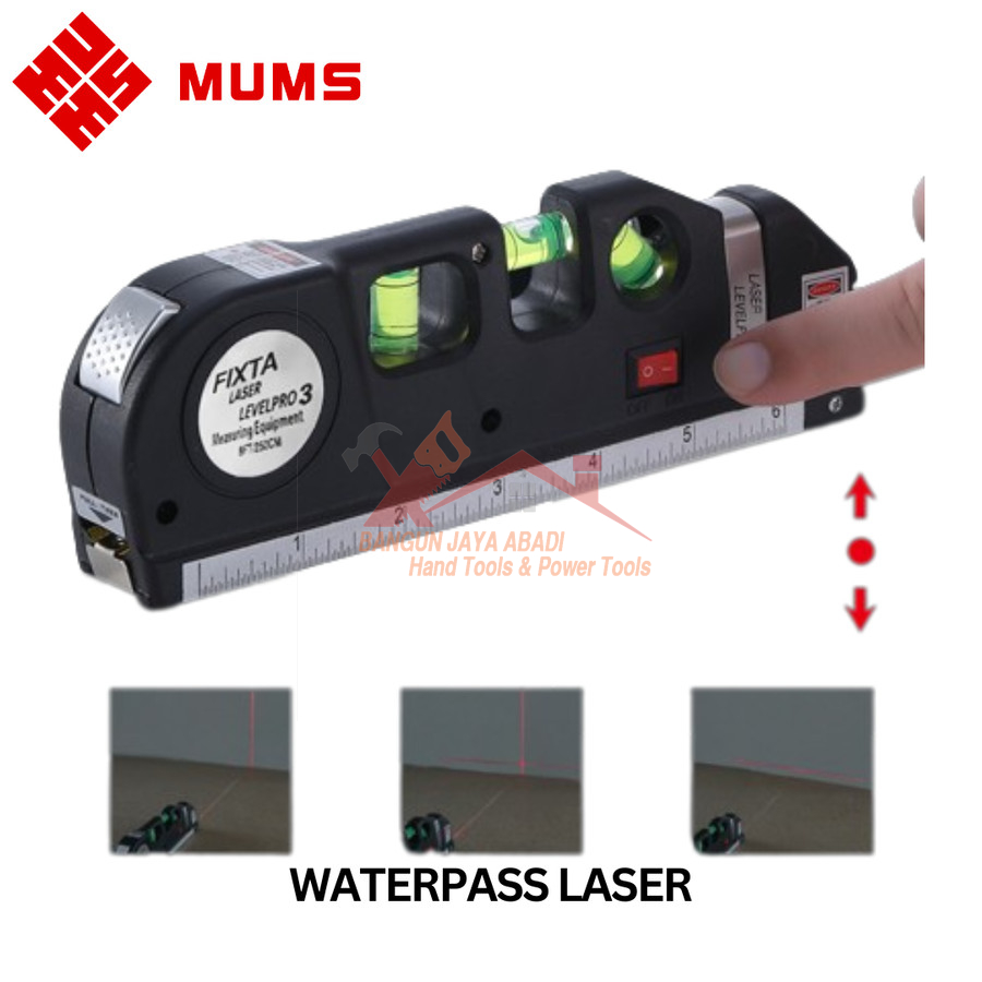 Waterpass Laser Waterpas Fixta Level Pro 3 Water Pass + Meteran 250Cm Bja
