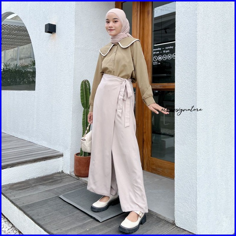 Celana Kulot Rok 2in1 Bahan Airflow Crinkle Celana Rok Tied Magnolia Outfit Terbaru Wanita
