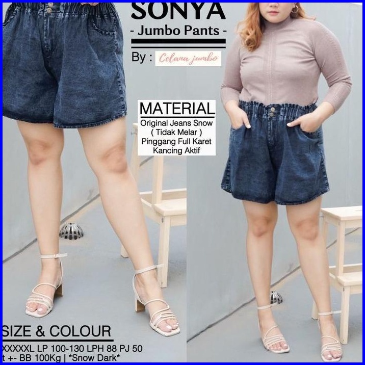 Hotpants Jeans Jumbo Sonya Hotpants Jumbo Bb 110 Kg Celana Jeans Pendek Highwaist Wanita Super Jumbo