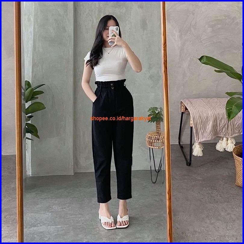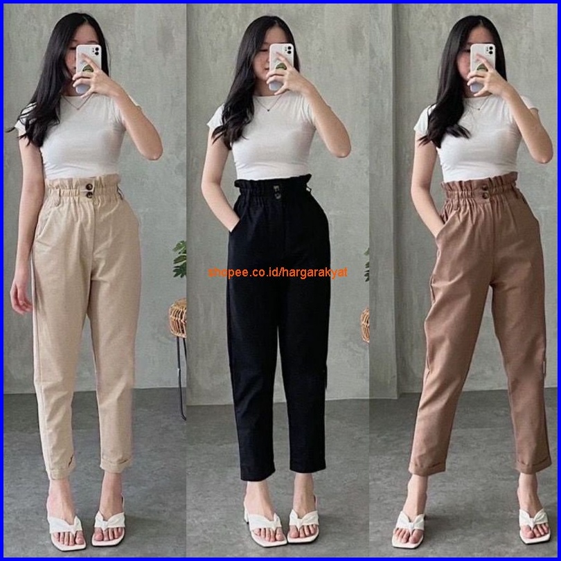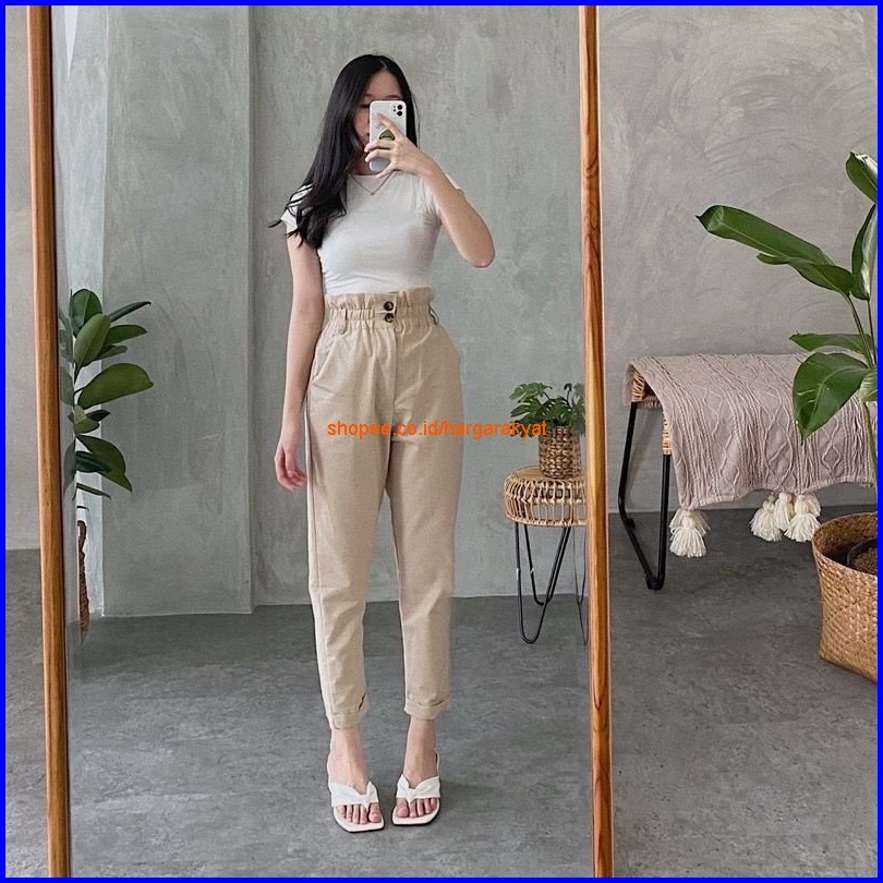 Celana Difa Hw Highwaist Linen Kancing 2 Boyfriend Linen