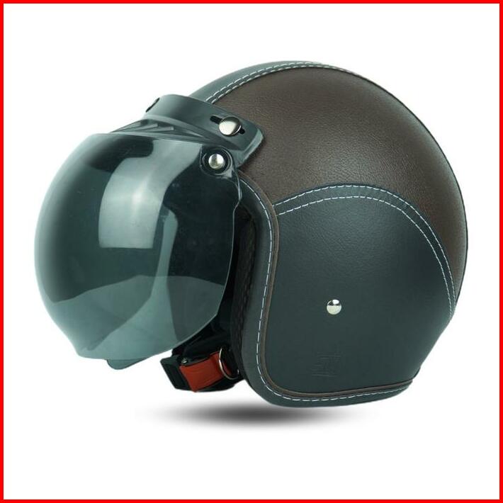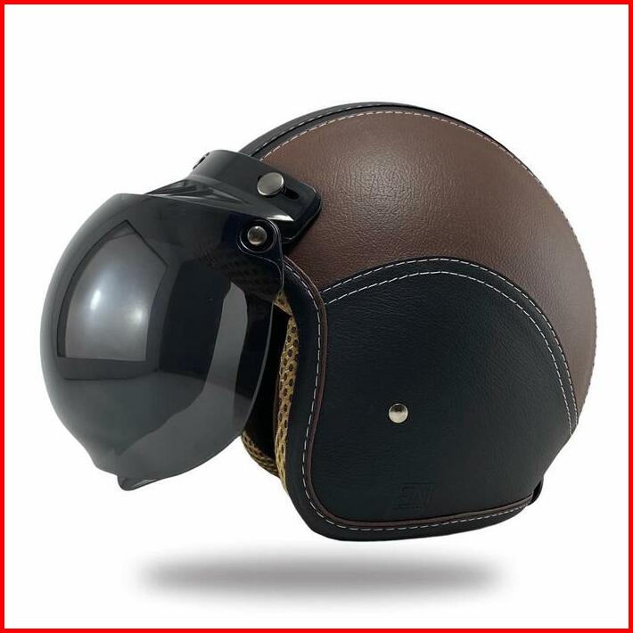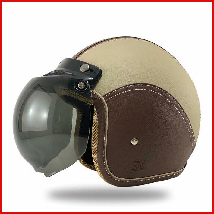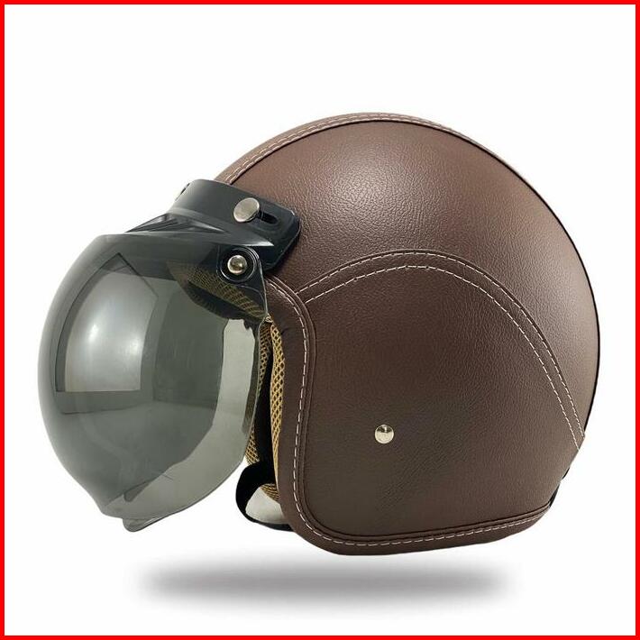 Helm Bogo Dewasa Wanita Pria Full Kulit Sni Coklat Kaca Cembung Motorcycle