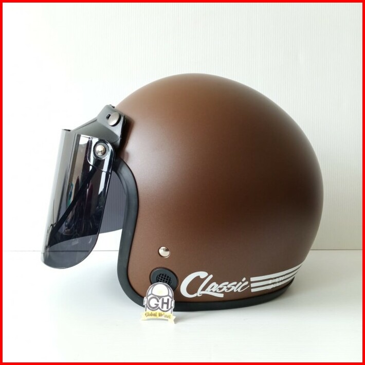 Helm Bogo Classic Garis Retro Motor Dewasa Sni