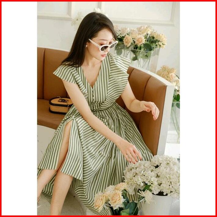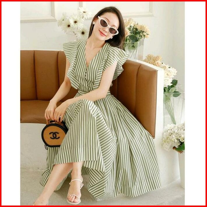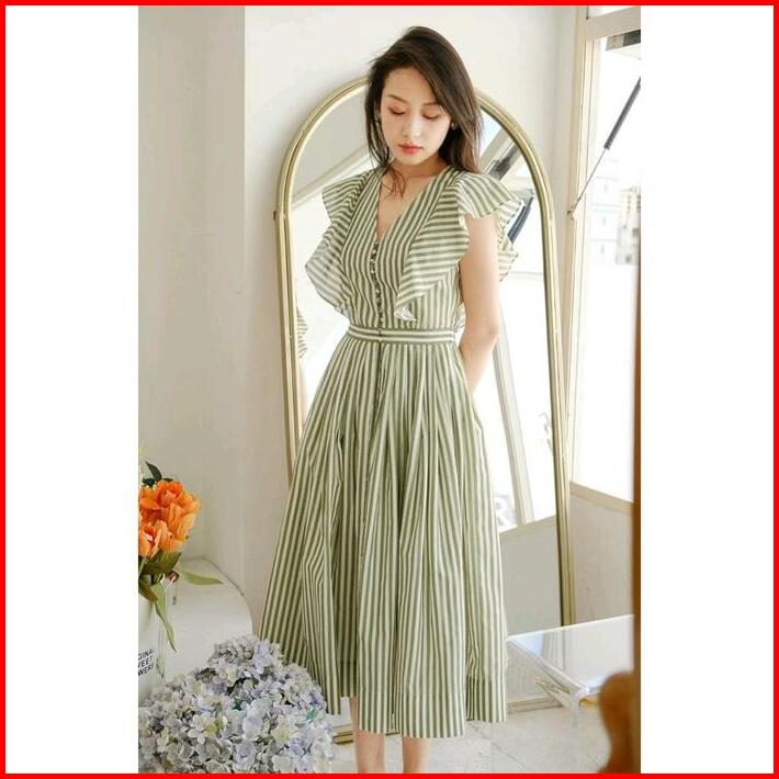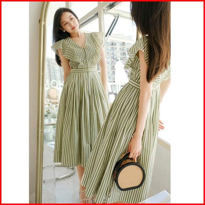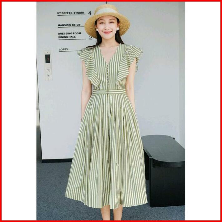Tm 14011 Dress Midi Marilyn Striped Ruffle