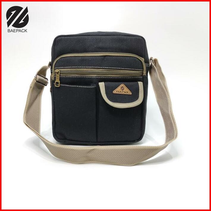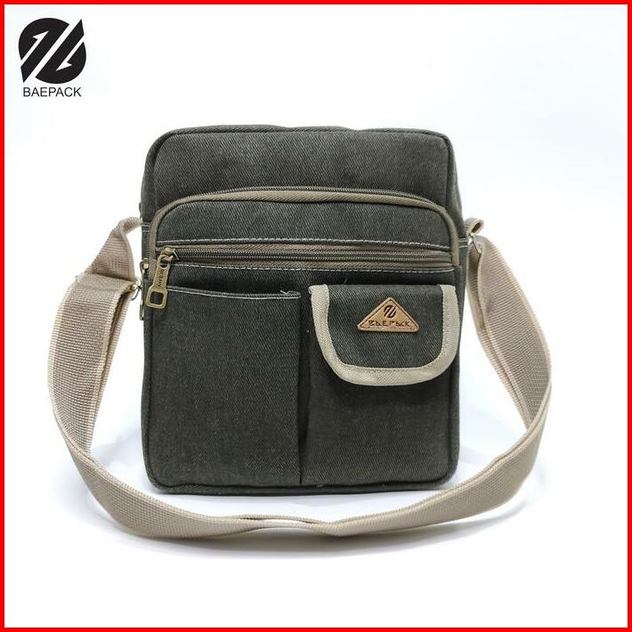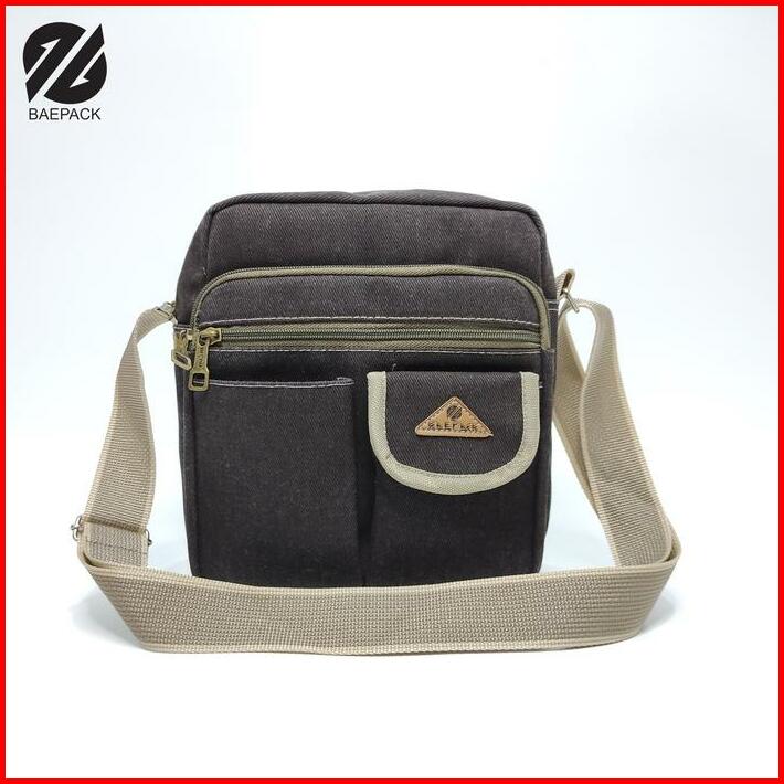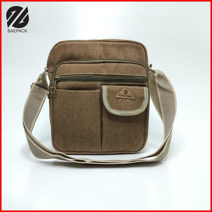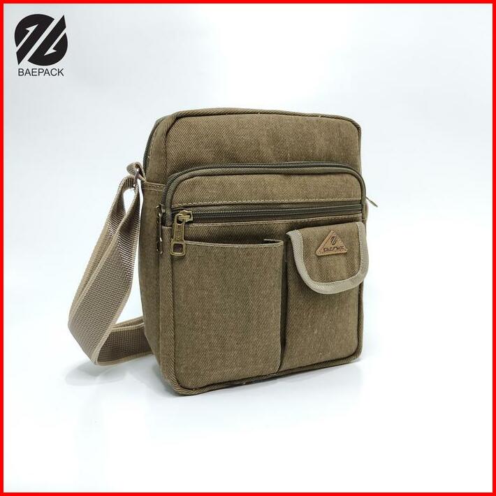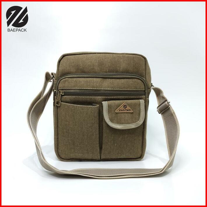 Baepack Tas Selempang Kanvas Pria Luzio Khaki Original Tas Bahu Selempang Canvas Premium Aesthetik Terbaru 2023 Korean S