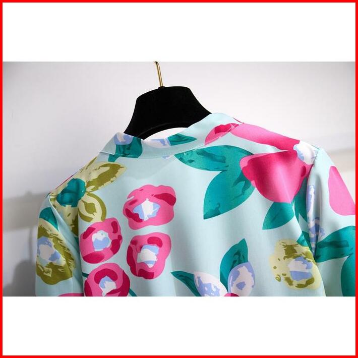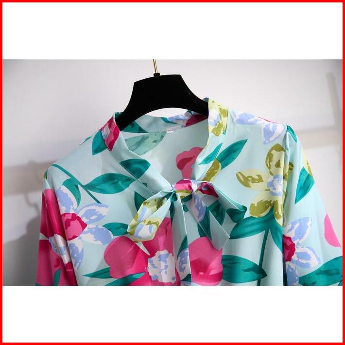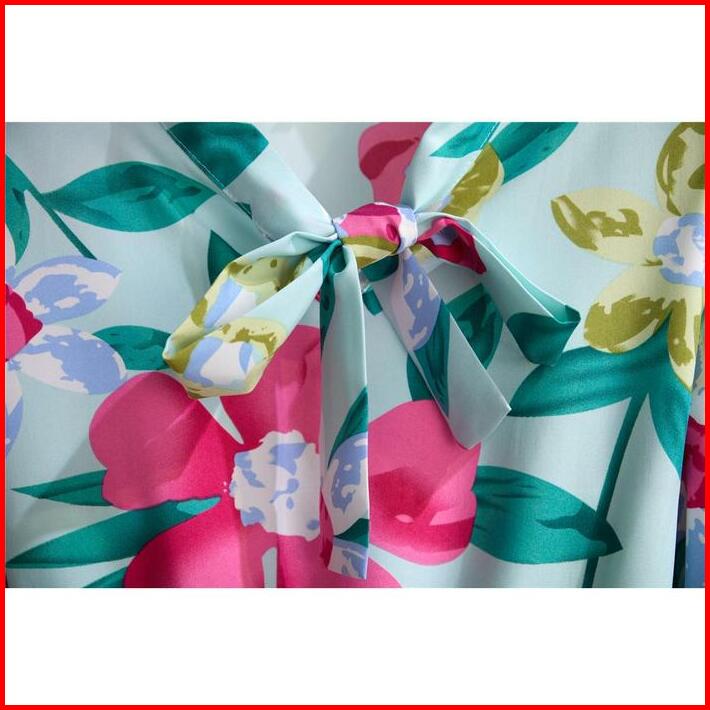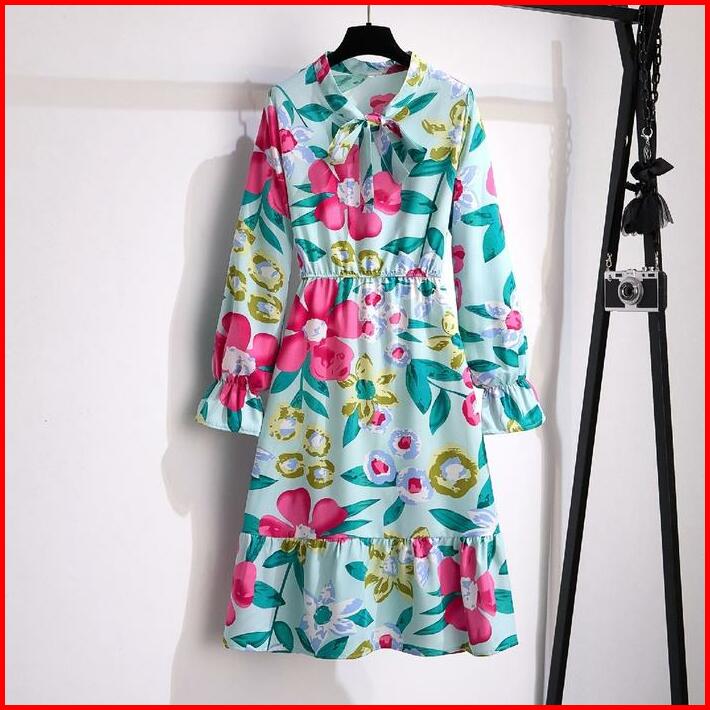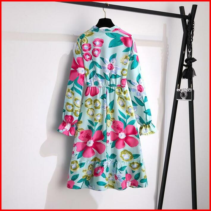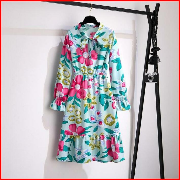 Tianshun New Fashion Floral A-line Long Sleeves Midi Dress Sifon Motif Bunga Dress Lengan Panjang Muslimah Motif Korean