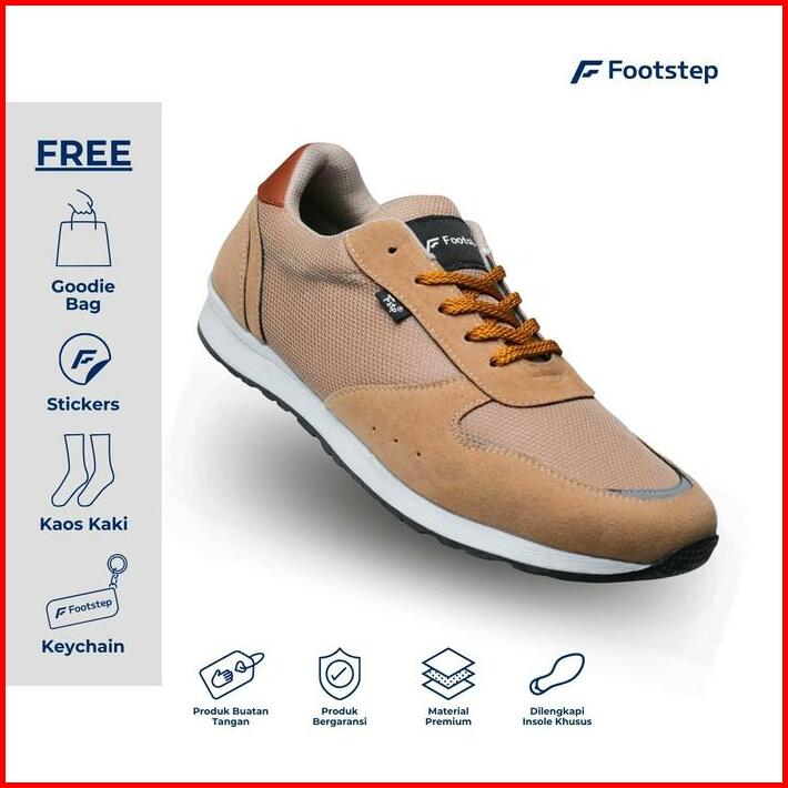 Sepatu Sneakers Pria Sport Footstep Footwear Victory V2 Khaki Casual Shoes Running Snekers Kasual Black Hitam