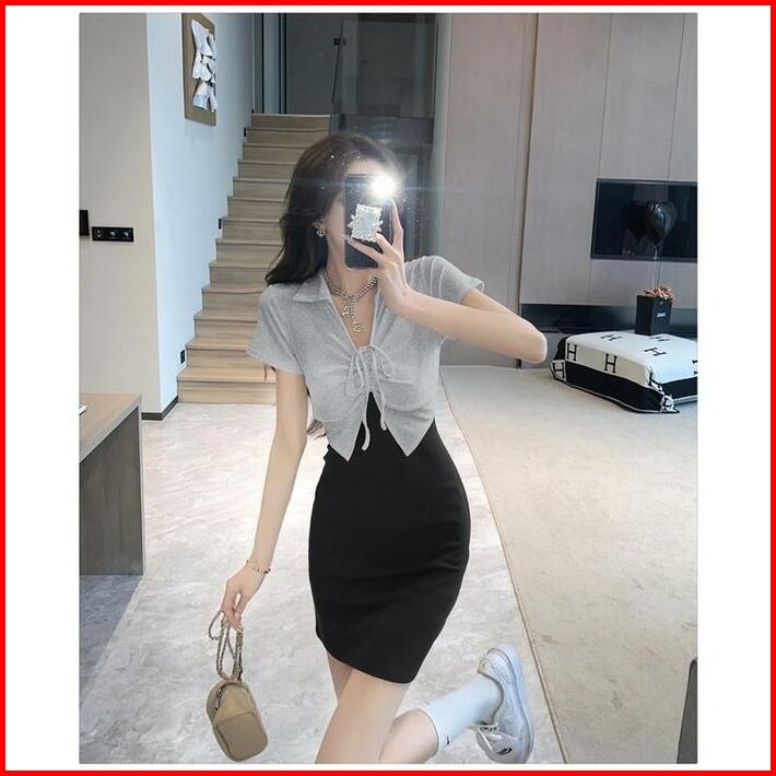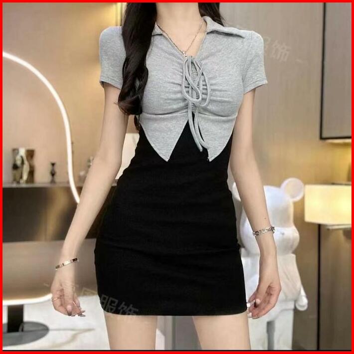 Cohan Dr118 Dress Casual Korean Sexy Bahan Knit Strech Fit Body Rok Midi