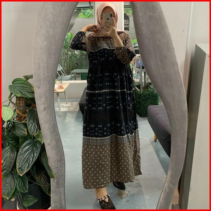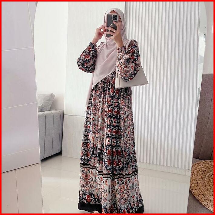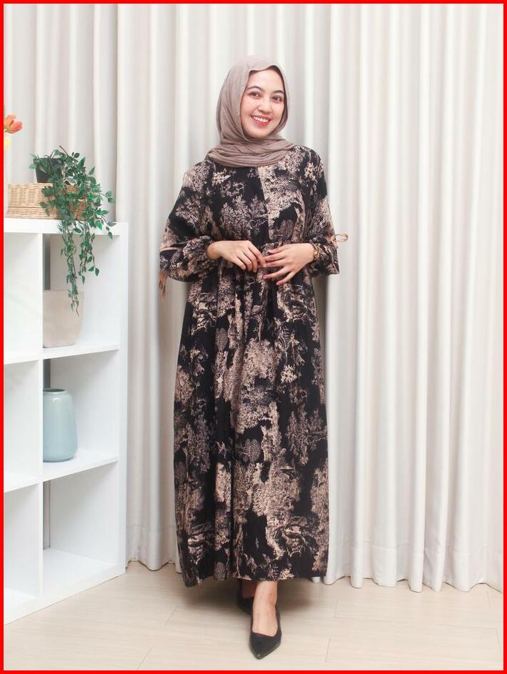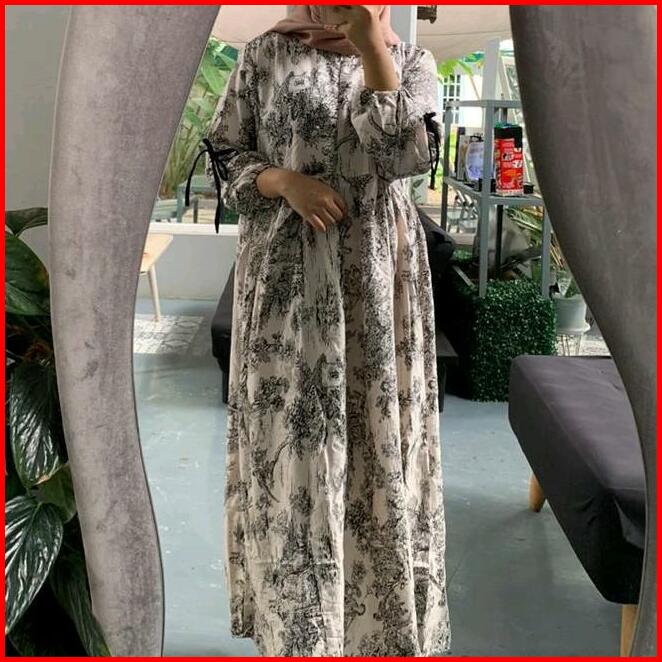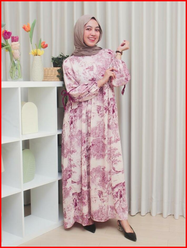 Anjani Midi Dress Rayon Premium Motif Bunga Terbaru Gamis Midi Pita Busui Friendly