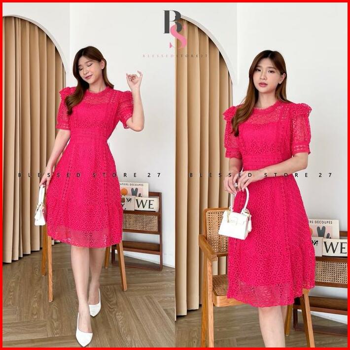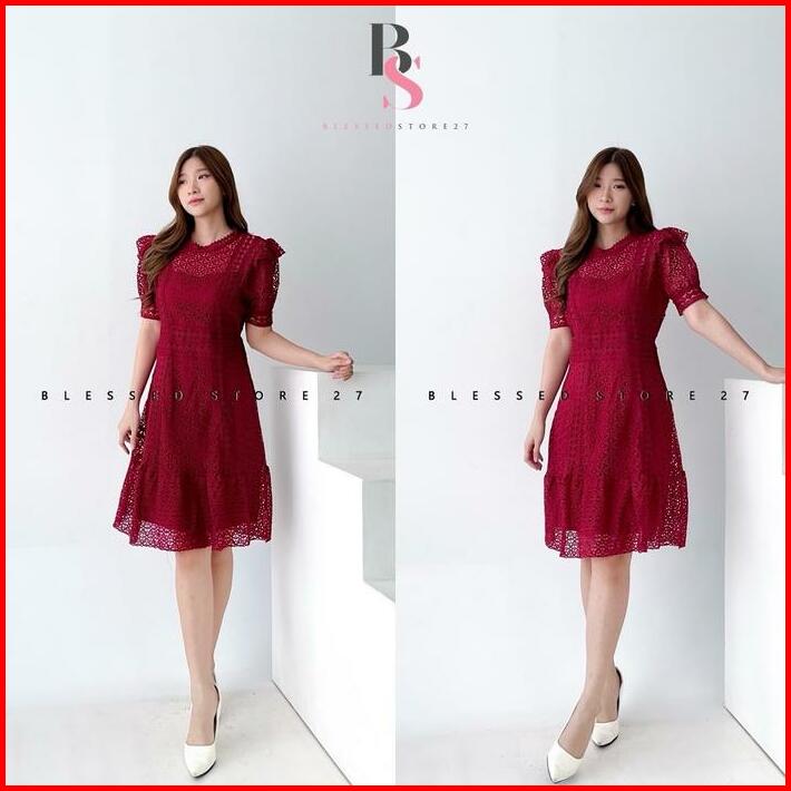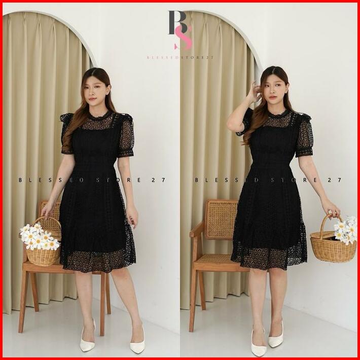 Ada Size Jumbo D1268 Hidi Premium Korean Style Vintage Midi Dress Pesta Simple Natal Elegant Gaun