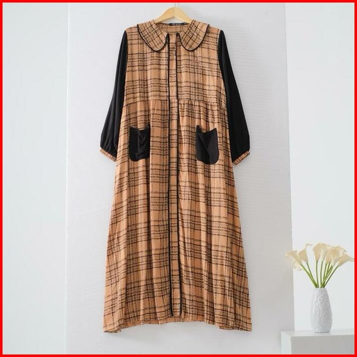 Gita Dress By Ziya Gamis Rayon Premium Dewasa Lembut Halus Saku Kancing Diamond Muslim Nyaman Salur Samping Katun Wanita