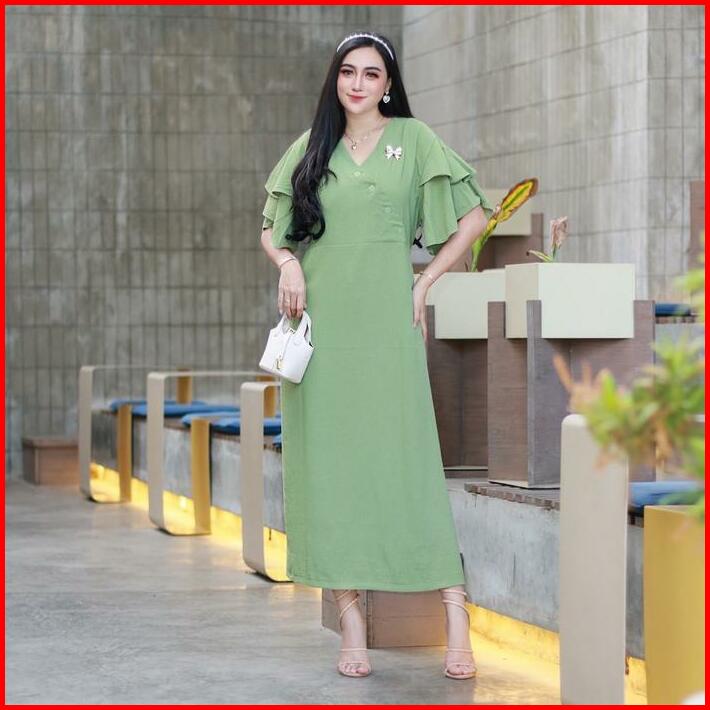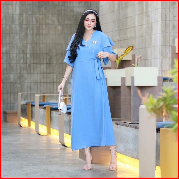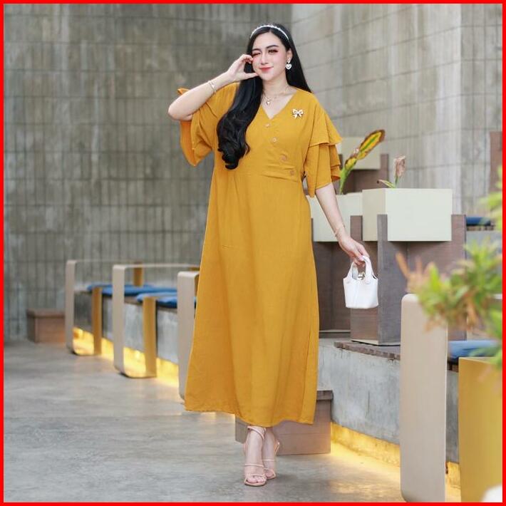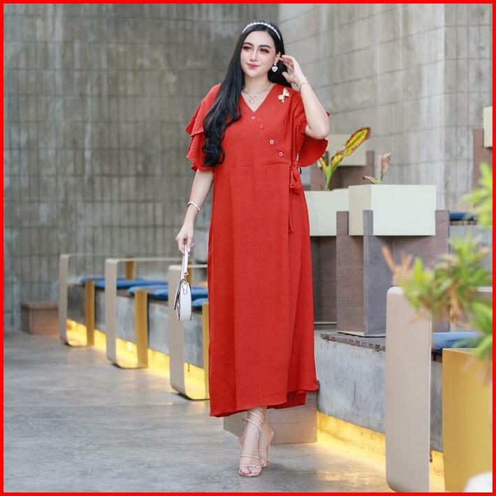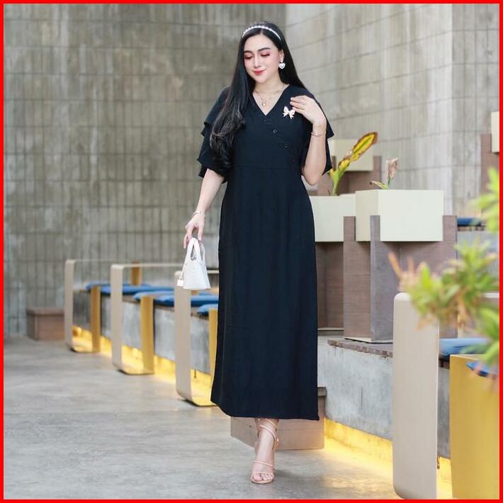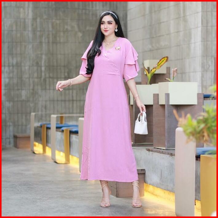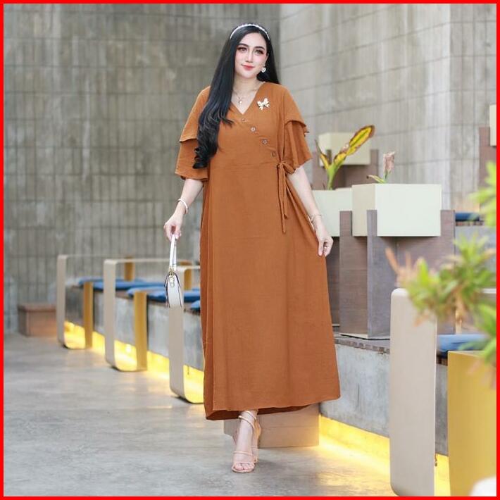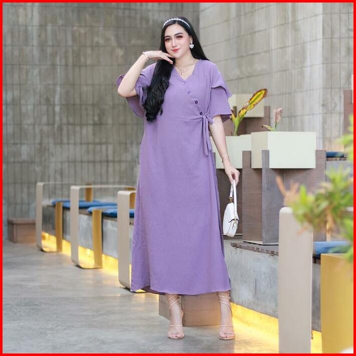 Dress Kimono Lengan Tumpuk Crincle Air Flow Wanita Busui Katun Midi Airflow Samping Casual Crinkle Balon