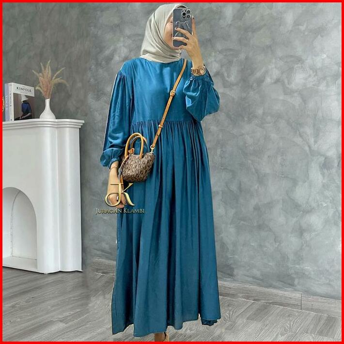 Nabila Oversize Midi Jumbo By Juragan Klambi Free Bros Rayon Viscose Sleting Busui Kain Lembut Muslim Nyaman Gamis Dress