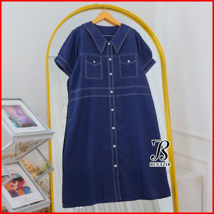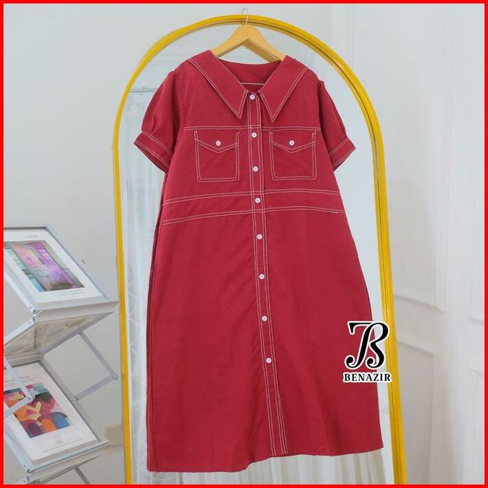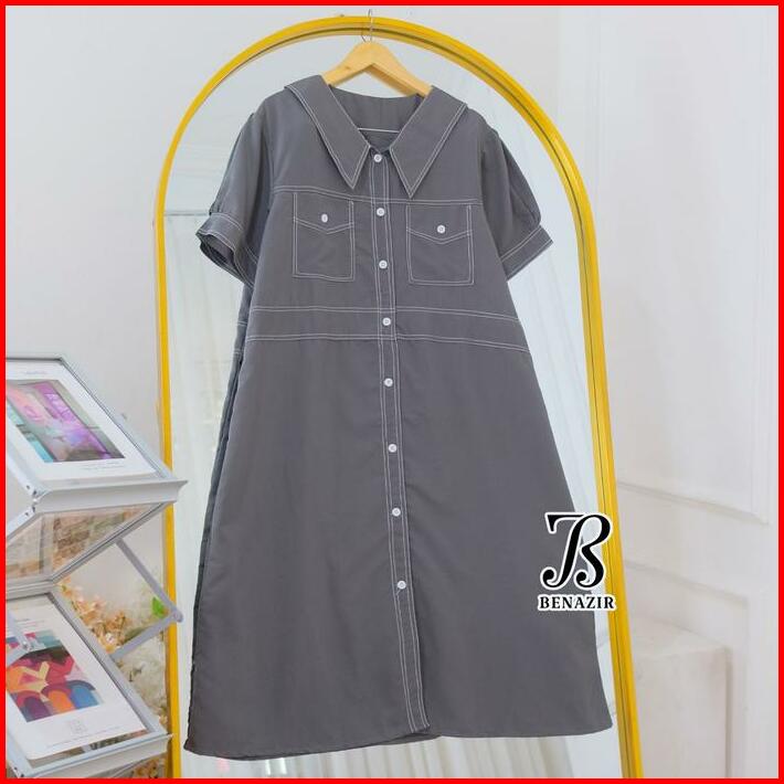 Home Dress Tiara Polos Lengan Pendek Midi Dress Bigsize Ld 120 130 140 Bahan Katun Miracle Benazir