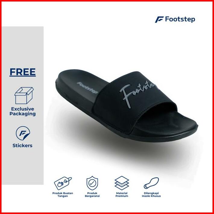 Footstep Footwear Sandal Pria Slide Zeta Black Grey Original Sandal Shoes Sendal Selop