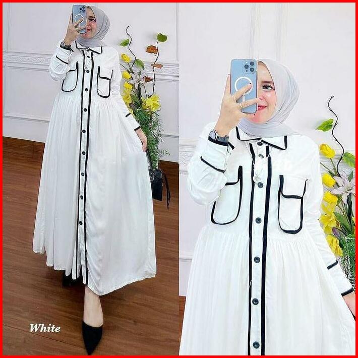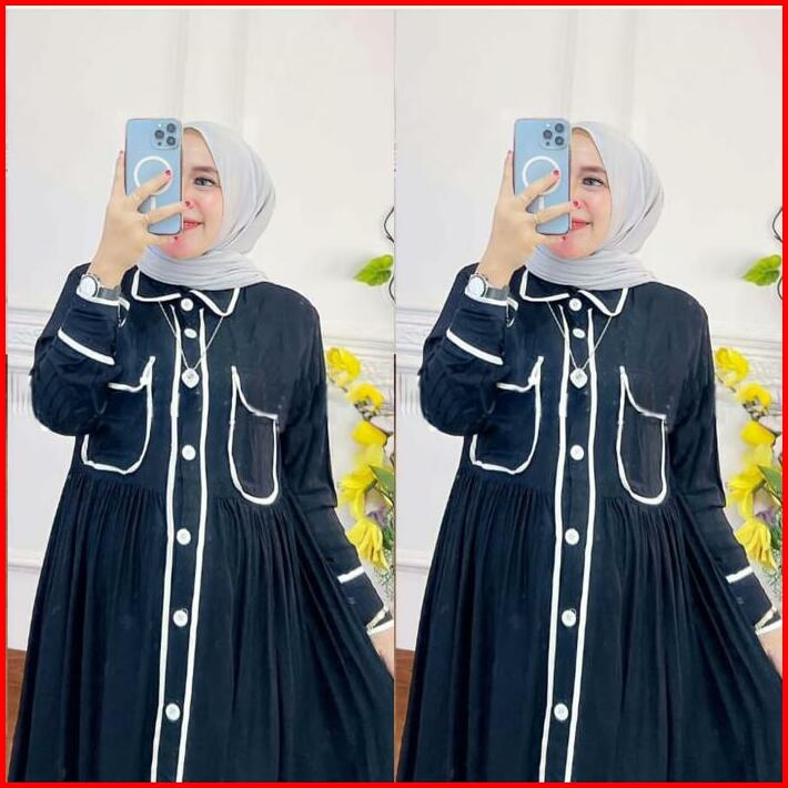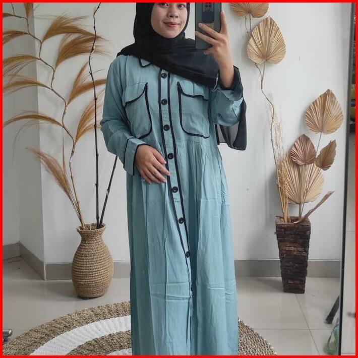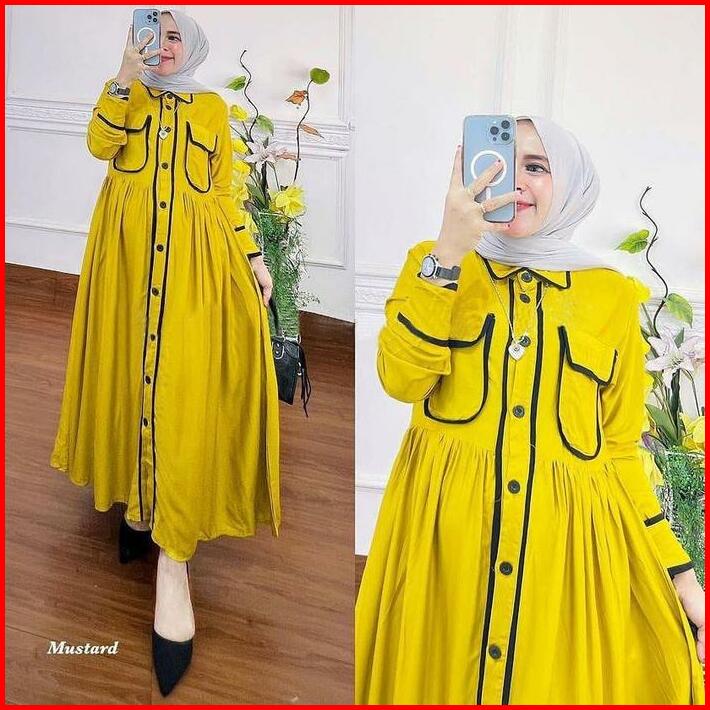 Azhar Busana Zafira Midi Dress Wanita Rayon Twill Model Saku Dua Cantik Elegant Simple Midi Terbaru Ukuran L Dan Xl