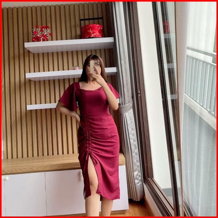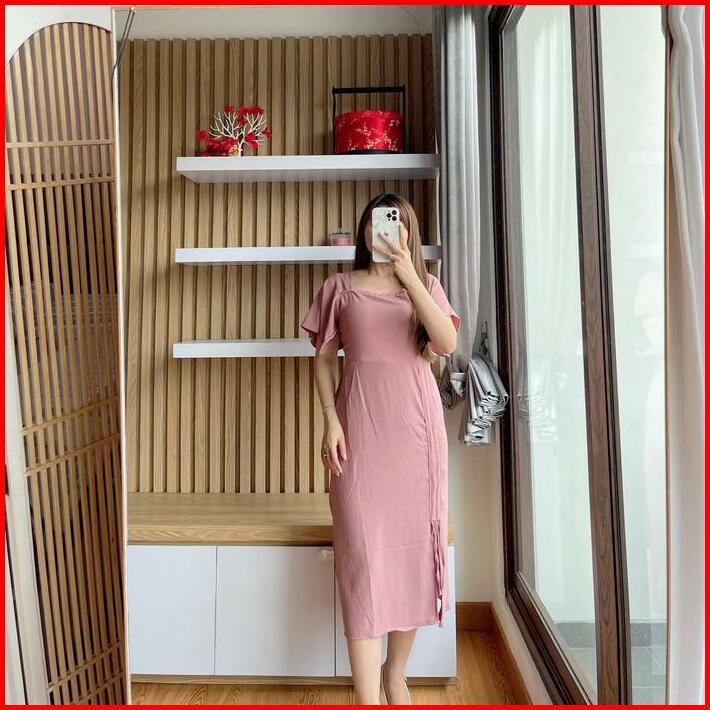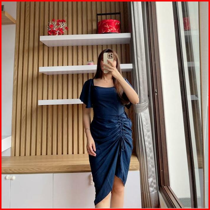 Dress Serut Lauren Cringkle Casual Fit Wanita Crinkle Baju Midi Panjang Mini Pendek Pesta Simple Perempuan