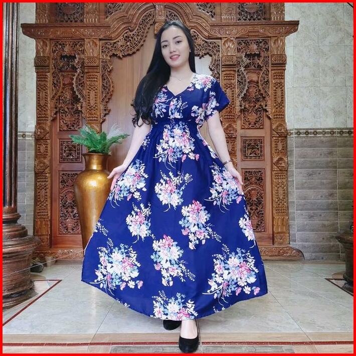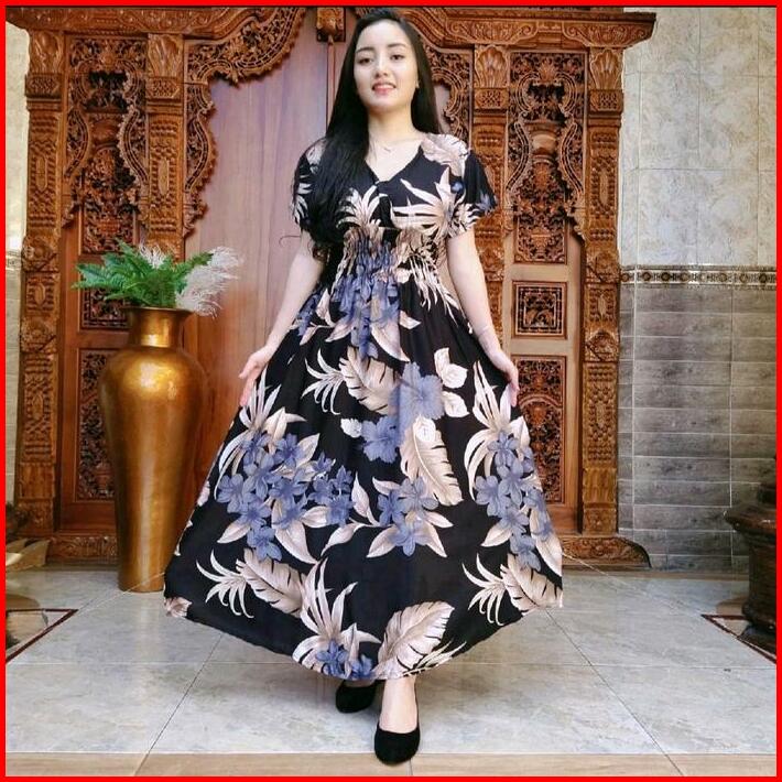 Dress Mozza Kinanti Busui Rayon Premium Volkose Santai V-neck Boat Neck A-line Jalan Bunga Polos Slim-fitting Liburan Ba